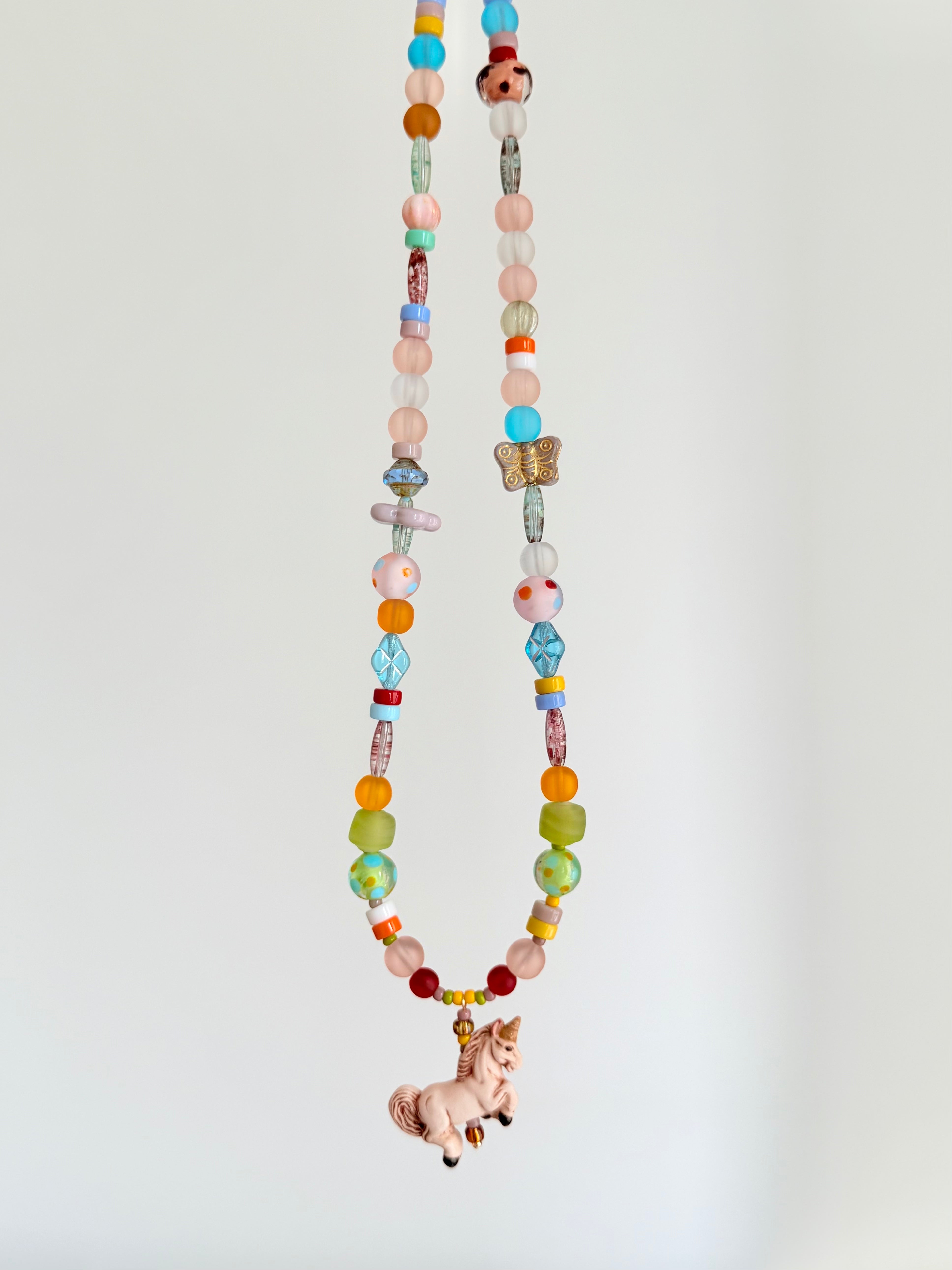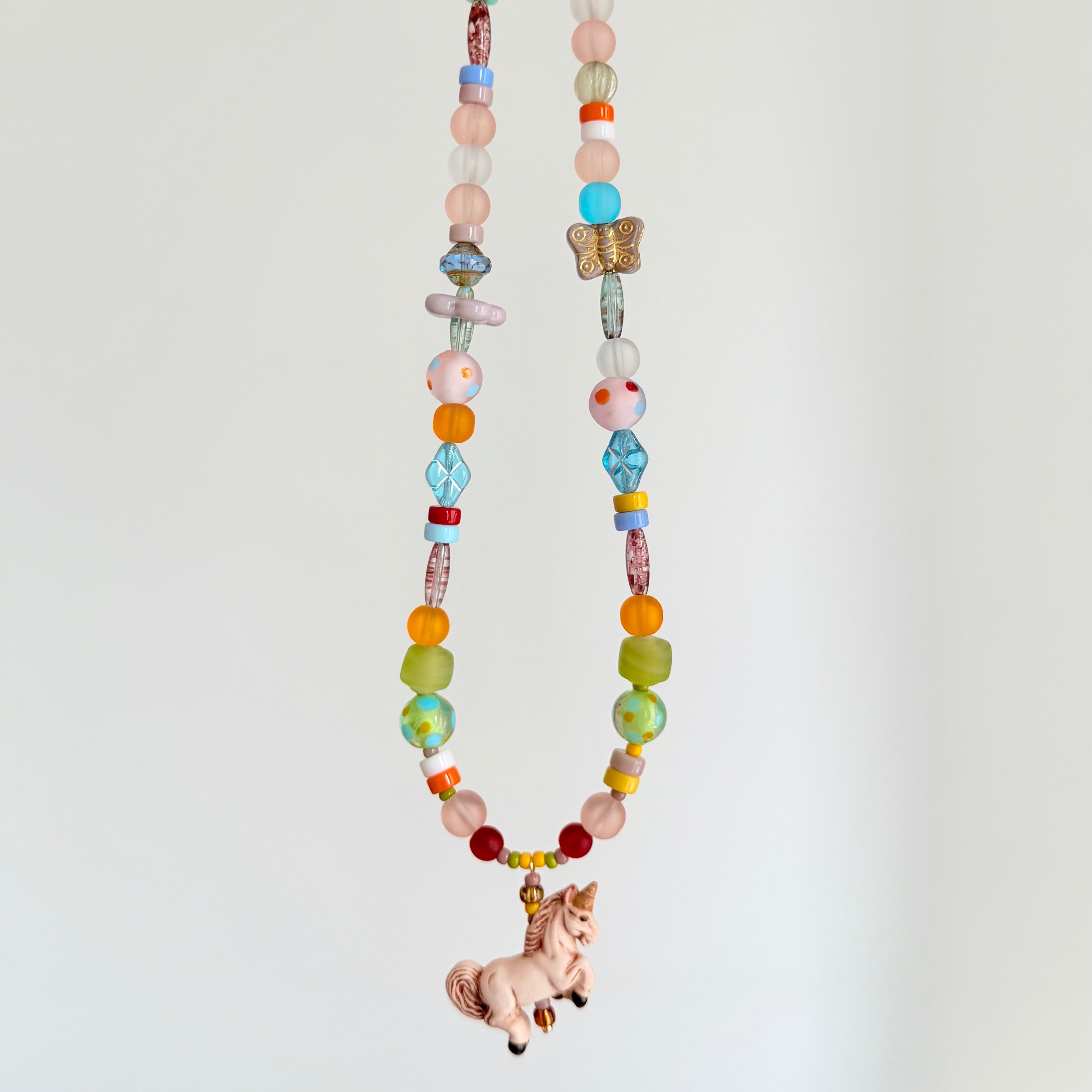 Each piece features an adorable hand-painted animal—like a clever lion, a cute panda, or a gentle cat—nestled among colorful, tactile glass beads. Every necklace, bracelet, or pair of earrings is a little story, full of movement, color, and fun.