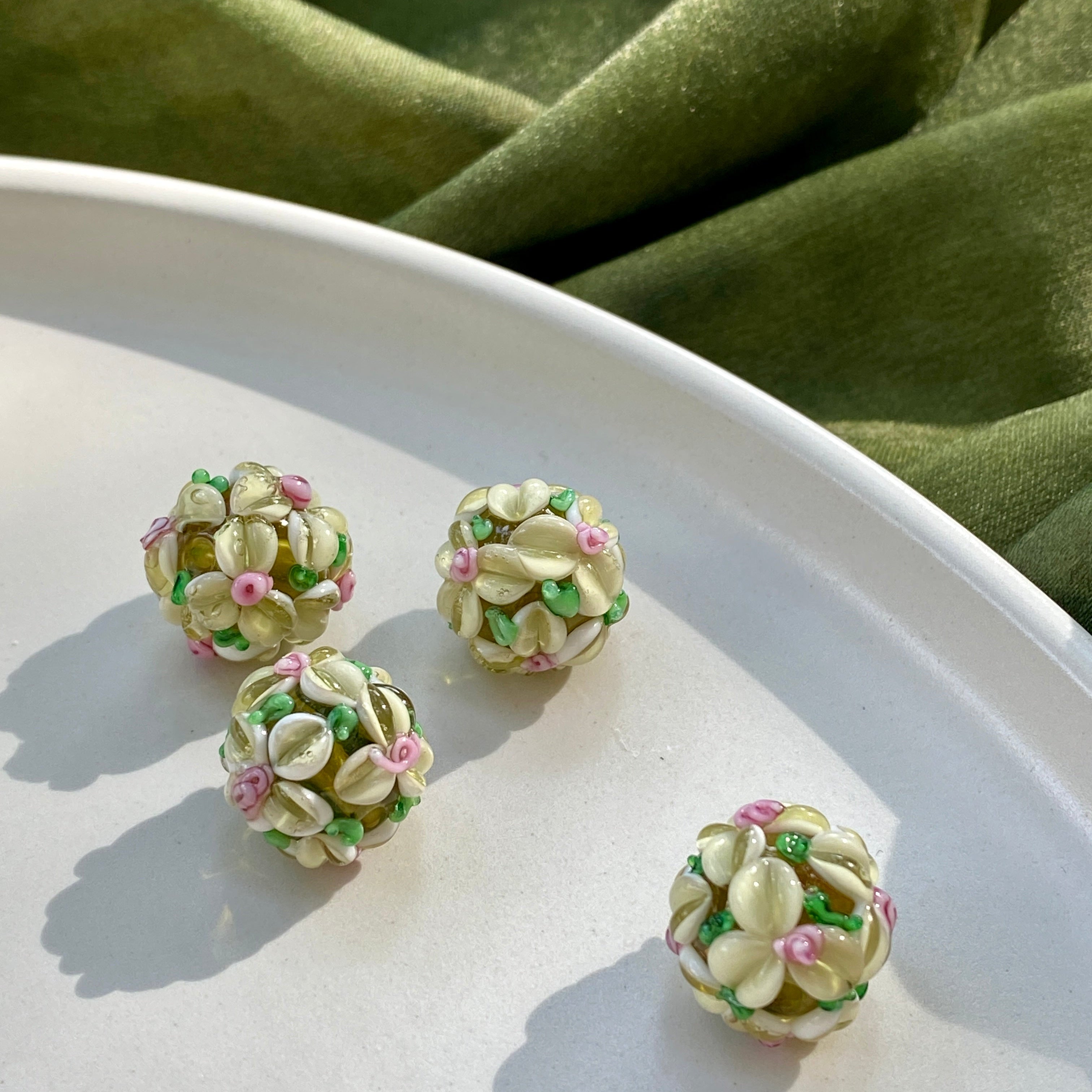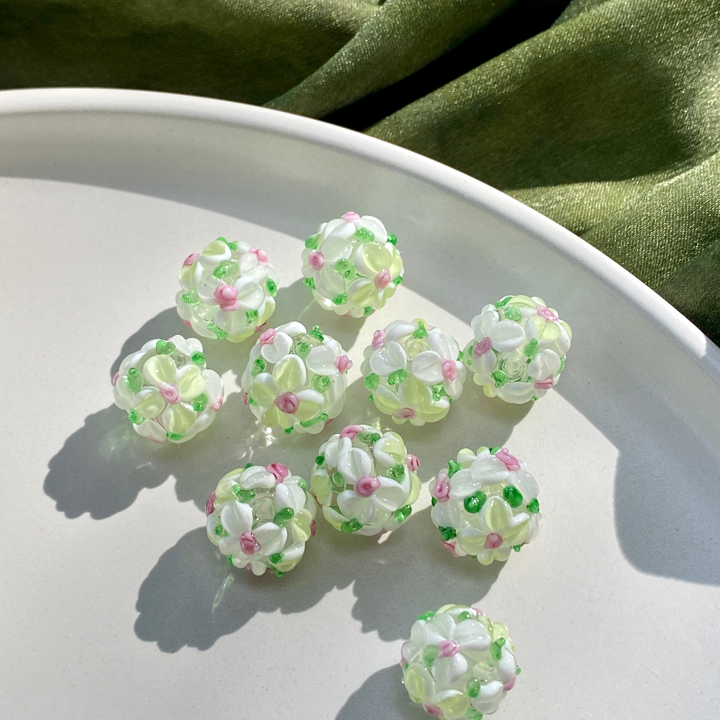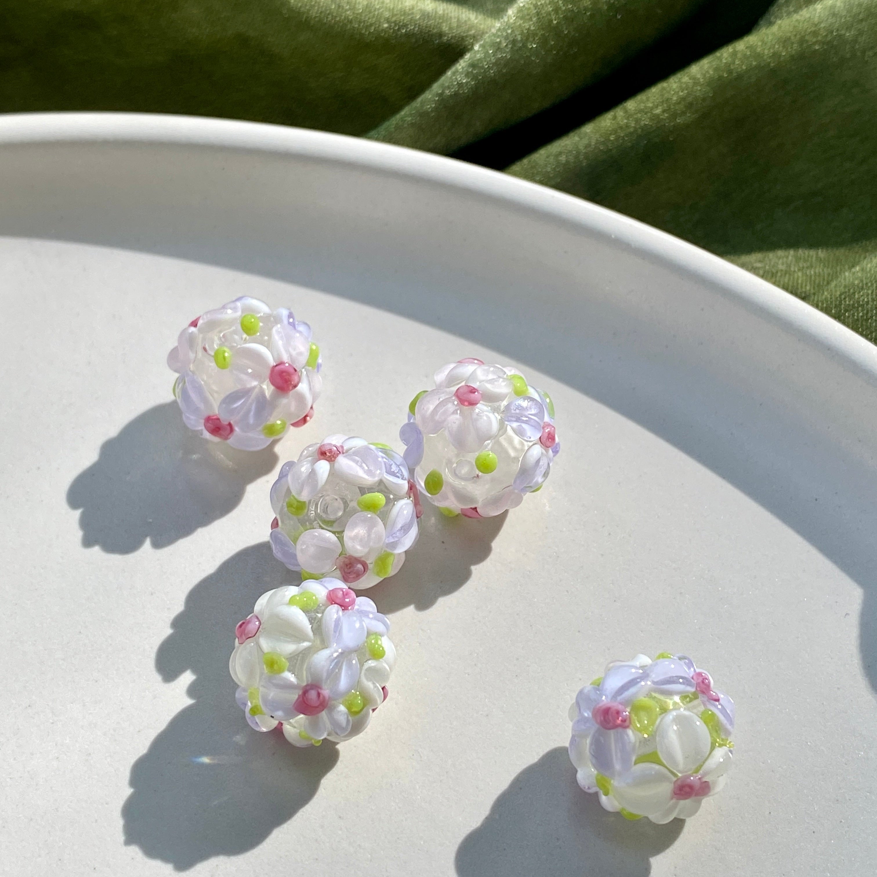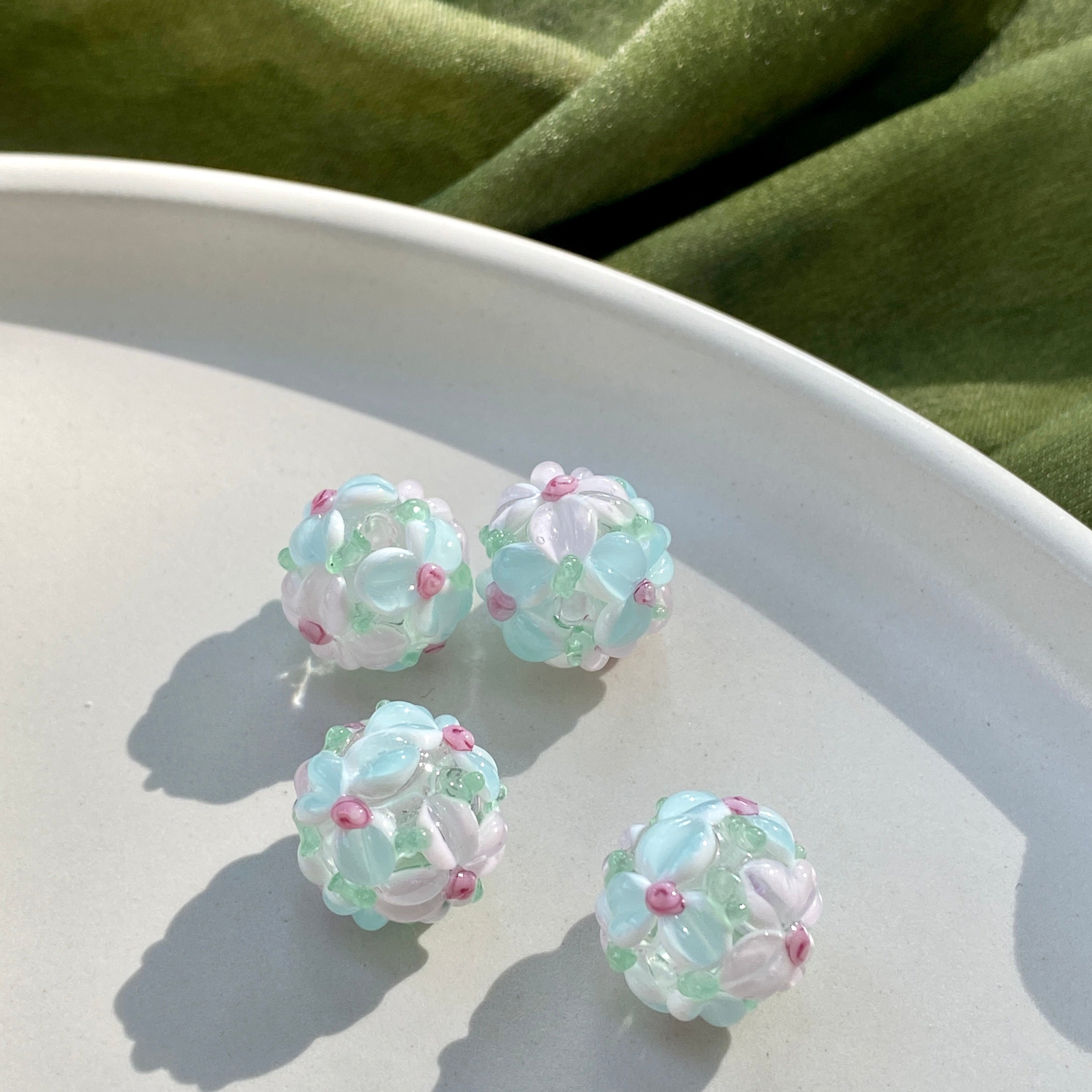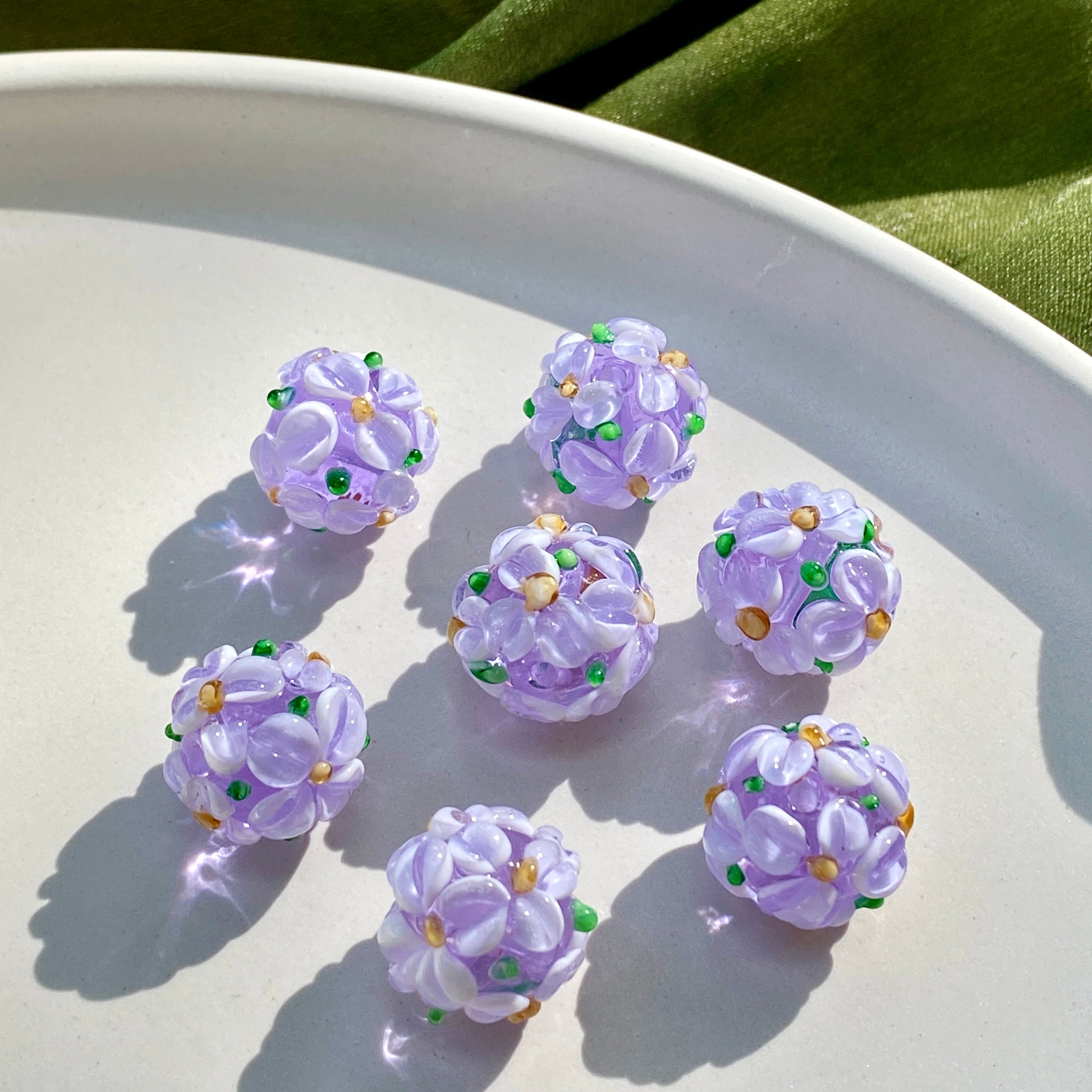 Handcrafted with exquisite detail, these 15mm hydrangea-style glass beads are bursting with dimensional florals and vibrant color palettes. Perfect for DIY jewelry makers who want to add a soft romantic touch to their creations.